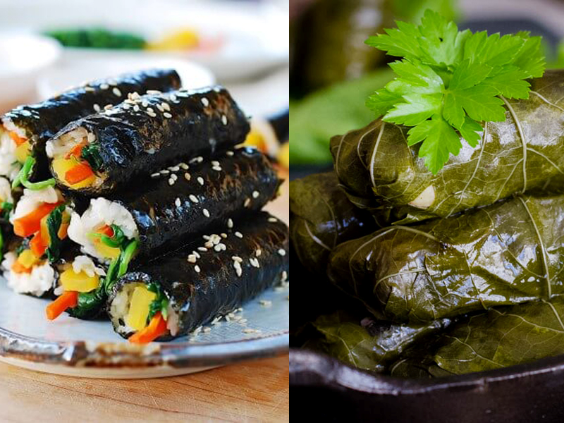 Stuffed vine leaves and Kimbap