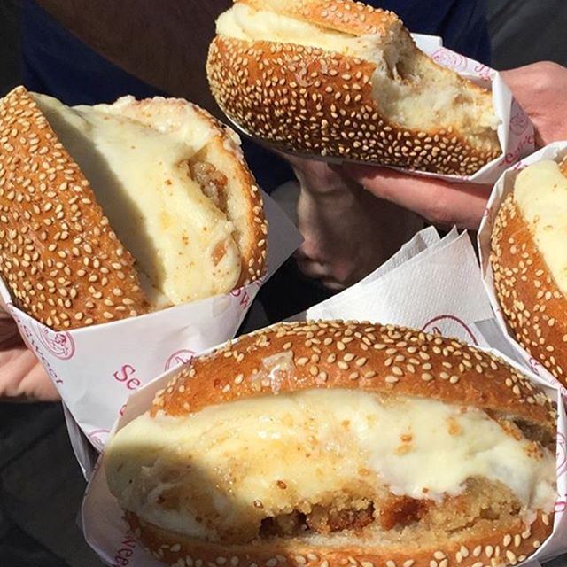 Although it’s considered a desert, in Lebanon people consider it a morning meal. It’s prepared with melted cheese, a pastry that is soaked with sweet sugar syrup. It’s usually served as a round-shaped thick bread topped with sesame seeds.