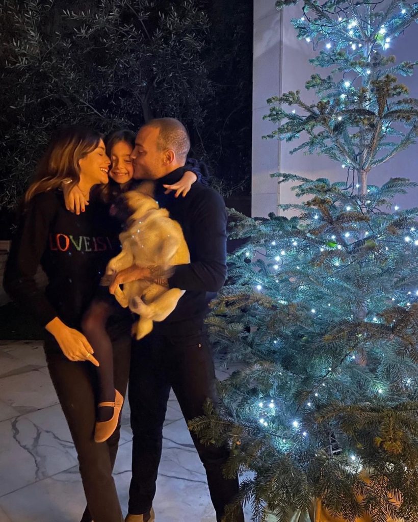 A blue Christmas tree lit up Nour’s family’s night. She, her husband, daughter and their dog look more than happy. Her Ig caption read: “Merry Christmas from us to you ❤️”.