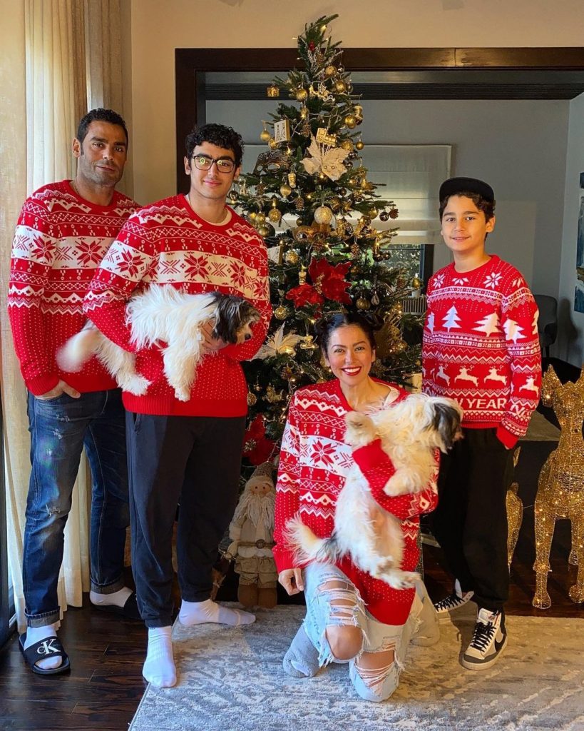 Lekaa and her husband, Egyptian goalkeeper Mohamed Abdel Monsef, take a beautiful family picture with their sons, all wearing red in the spirit of Christmas! On Instagram, she posted this picture with the caption “Merry ???”.