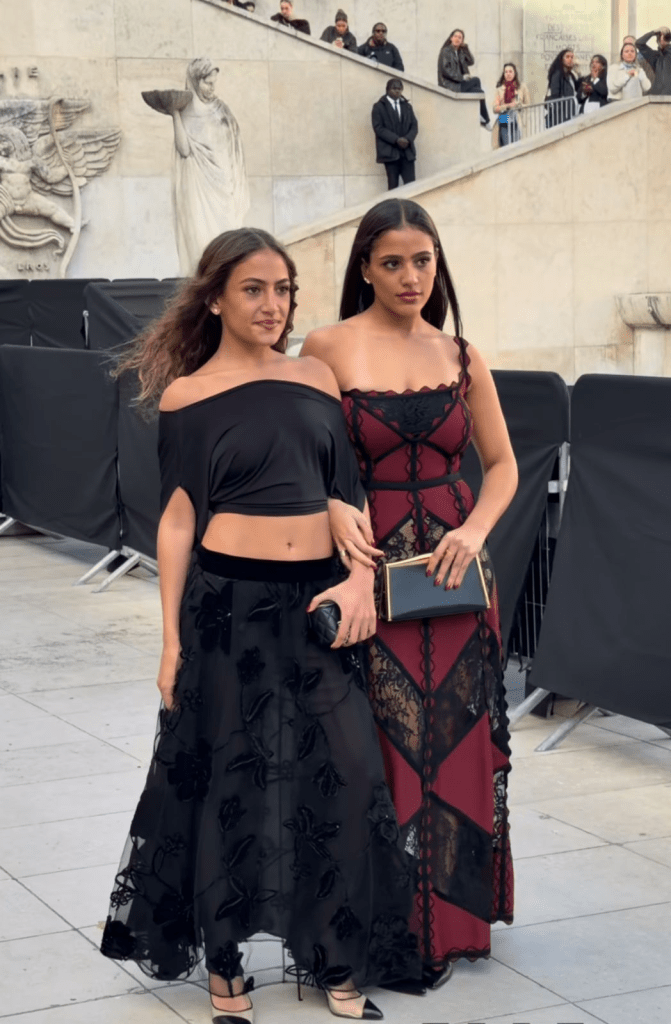Jana and Kenzy made a stylish sister statement — Jana in a corseted maroon-and-black lace gown that radiated drama, and Kenzy in a black off-shoulder crop top paired with a sheer floral maxi skirt. Their coordinated dark hues and youthful silhouettes felt fresh yet fashion-forward, proving the Diab sisters are ones to watch.