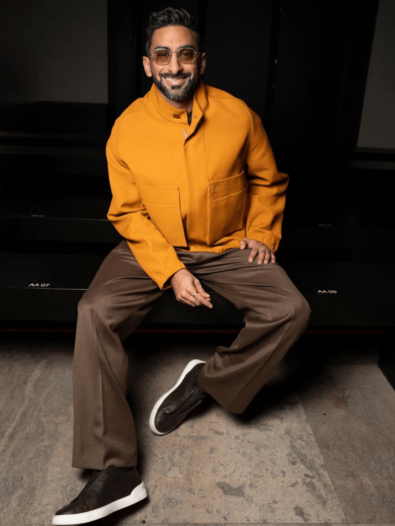 Elie Saab’s show got an extra dose of personality thanks to Anas Bukhash. Rocking a bold mustard jacket paired with brown trousers and sneakers, he nailed the “modern menswear” vibe. Clean, confident, and full of flair — exactly what we expect from one of the region’s most stylish men.