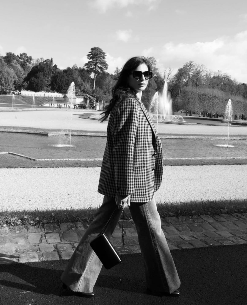 Lebanese director Nadine Labaki brought timeless cool to Celine, rocking a houndstooth blazer, high-waisted jeans, and a white tee — the kind of look that whispers “chic” instead of shouting it. Her oversized sunglasses gave total Parisian muse energy.