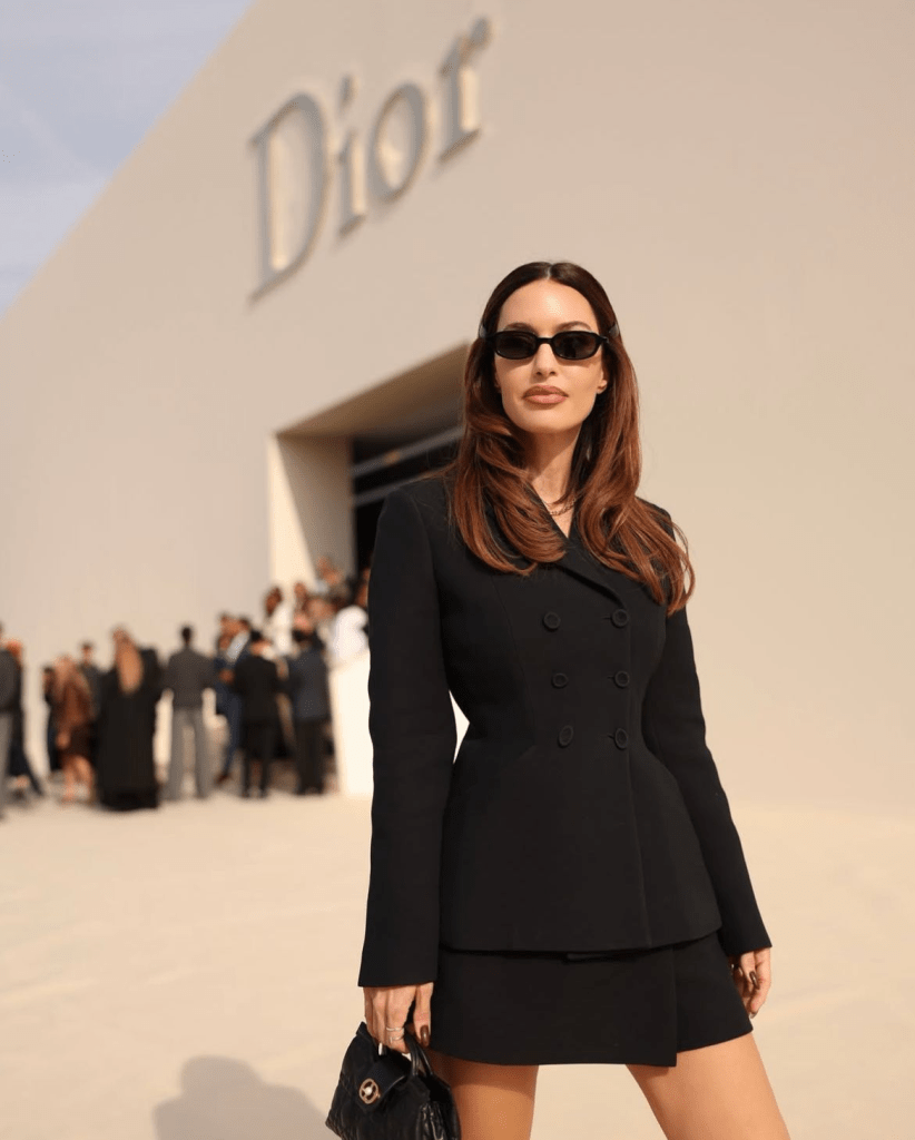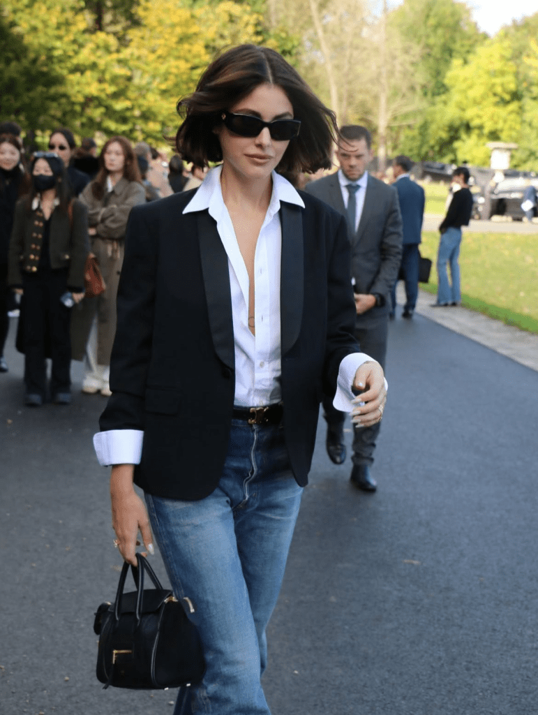 Model and influencer Nour Arida showed up at Celine exuding sleek confidence. Her black tailored blazer, crisp white shirt, and denim combo nailed the house’s rock-chic aesthetic. Paired with black rectangular shades and a sharp bob, Nour was the definition of “less is more.” Effortless, edgy, and perfectly Celine-coded.