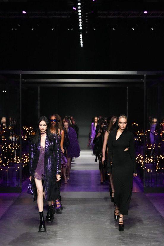With 2023, Versace is all about female empowerment and confidence and the brand brought out that inner beast persona through its rebellious grunge style designs. Set in a dimly lit stage lined with candles, the models matched the dark tone of that night’s show by donning all-black looks with traces of purple and red. From biker jackets with metal studs to form fitting dresses, the entire collection was aptly dubbed “A Goddess Gone Gothic”.