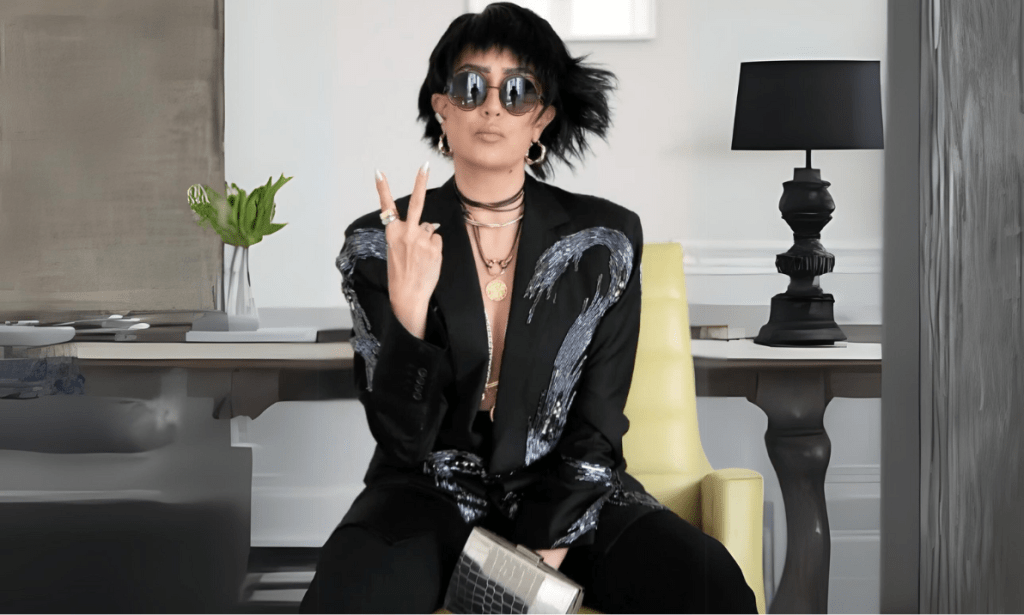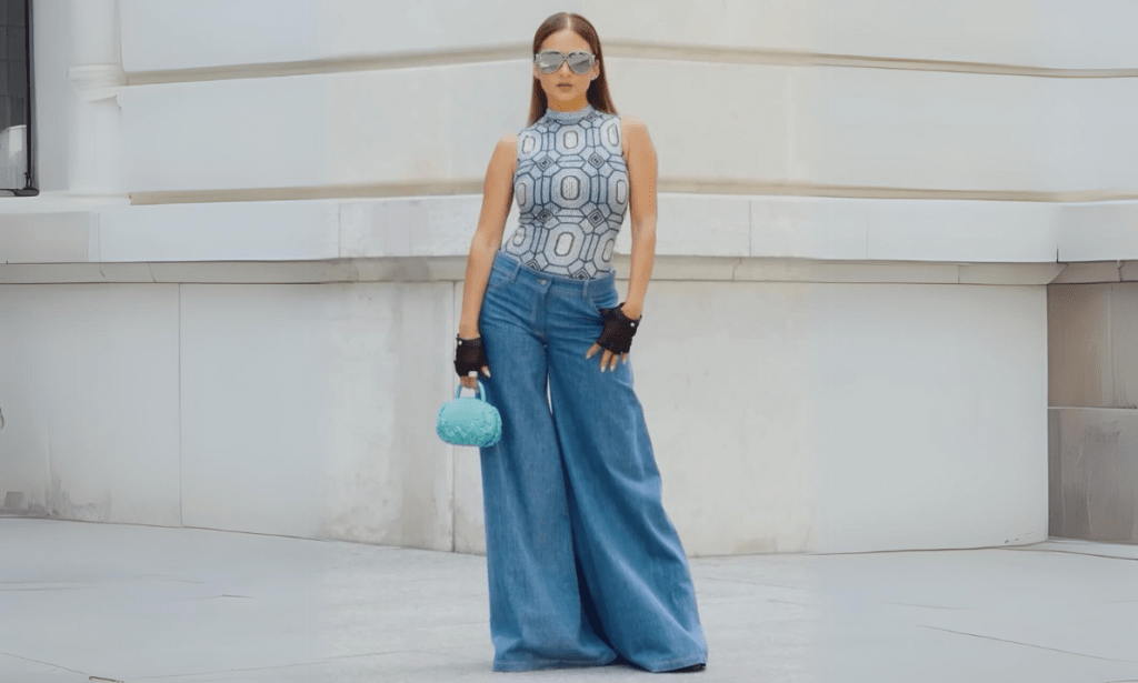 Attending Haute Couture Week, legendary Egyptian actress Nelly Kareem knew how to slay her look. She arrived in a Georges Hobeika mosaic-patterned pale turquoise sleeveless top paired with wide-legged blue pants. Her sleek hair and sunglasses gave her that uber-cool feel.