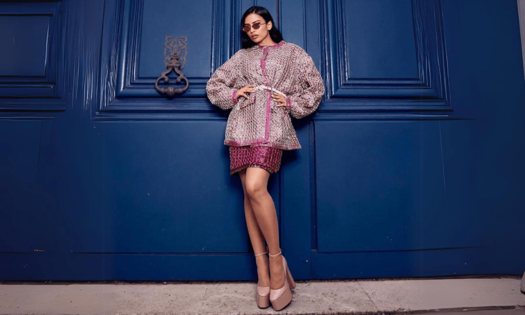 Known as the Jeddah-based fashionista, beauty, and lifestyle blogger, Alakeel worked with many renowned brands, including BVLGARI. At Haute Couture Week, she brought her A-game in a short light pink bedazzled coat paired with a hot pink skirt.