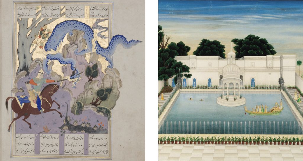 When exploring the museum’s collection up close, however, you’ll start noticing that not all Islamic art is in fact Islamic. While some of the beautiful objects have no relation to religion in any way, some of the objects are actually Coptic and depict the crucifix, and others were made by Jewish artisans. Similarly, the incredible Khalili Collection of Islamic Art, which highlights some of the most superb artworks from the Muslim world, also has beautifully illustrated Persian folios depicting Gushtasp, a major religious figure from the religion of Zoroastrianism. This self-described collection of Islamic art also features a painting of a Mughul-era palace being enjoyed by the Hindu gods Krishna and Radha. So what do we actually mean when we talk about Islamic art, if these are included in the definition?