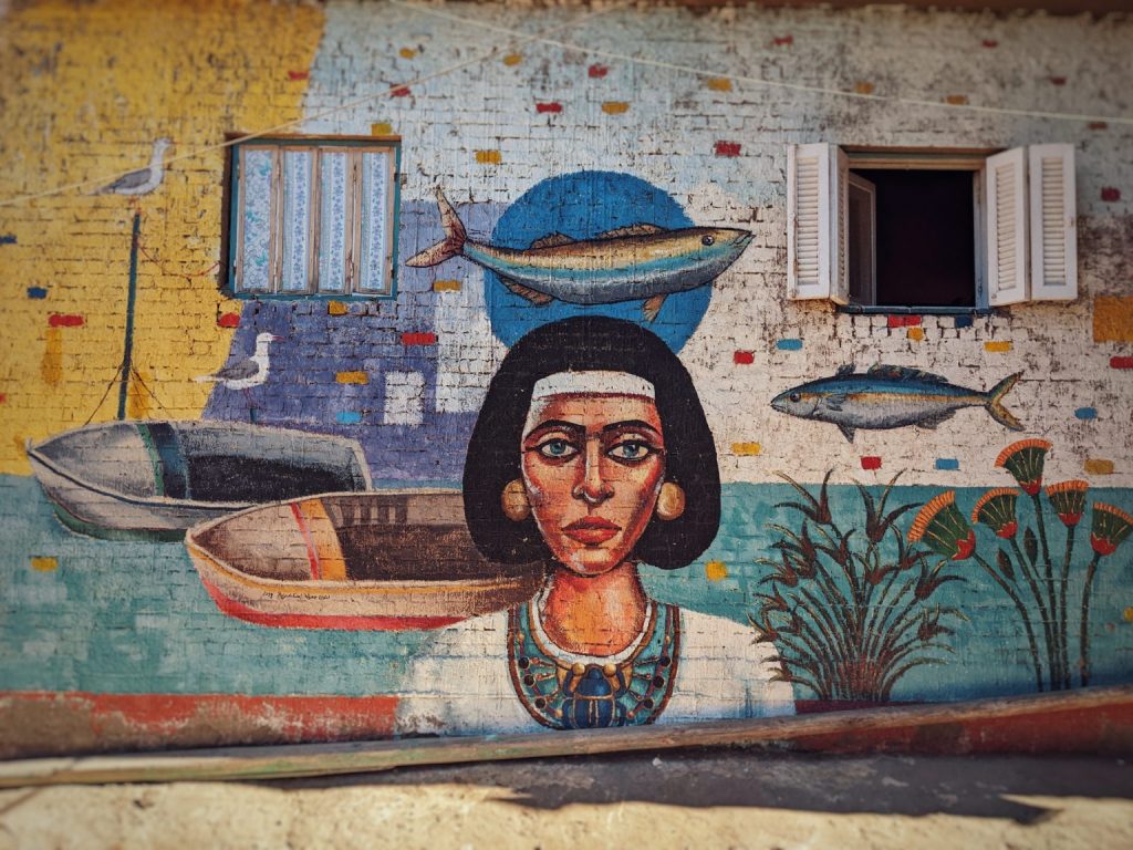 In a small fishing town on Egypt’s Mediterranean coast, artists from Egypt, the wider region, and the world would come once a year to paint enormous and colorful murals. Often reflecting on the town’s presence as a fishing village, Egyptian history, and culture, or simply a celebration of the local community, the murals are varied in both their content and style. A good hour or two can be spent exploring the murals and it’s well worth the trip to find them.