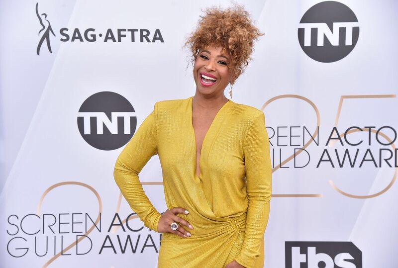 Sydelle Noel, from the Black Panther movie, in Entertainment Weekly pre-SAG party at the Chateau Marmont, wore body paint earrings. The jewelry is inspired by body art used in South Western Ethiopia; in addition to the Fulani ring inspired by African vibes.