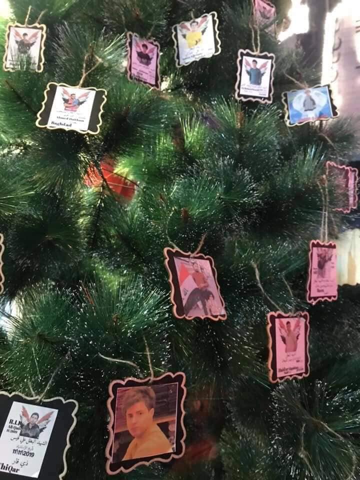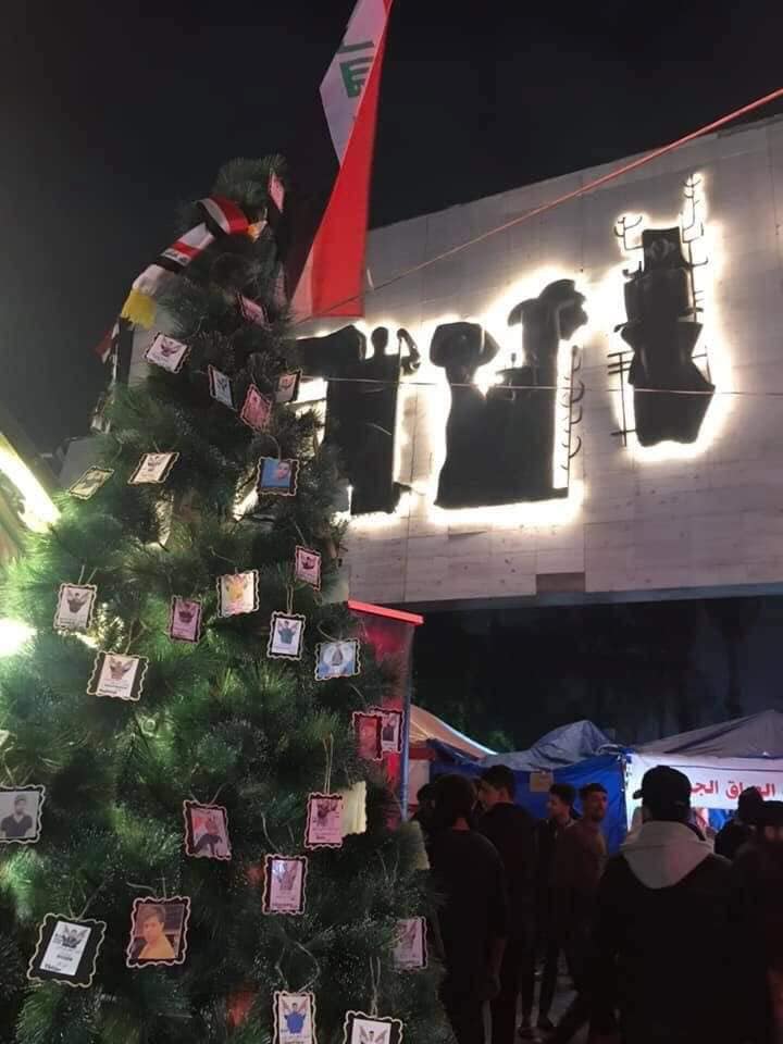 The holiday season is upon us, but how can we celebrate with this much grief and pain? In solidarity with all the families who lost their loved ones during the protests, Iraqis decided to set up this year’s Christmas tree differently! Baghdad’s Tahrir Square, which is currently occupied by anti-government protesters is not decorated with your usual Christmas ornaments, but instead, the protestors hung different portraits of those who were killed under fire from security forces.