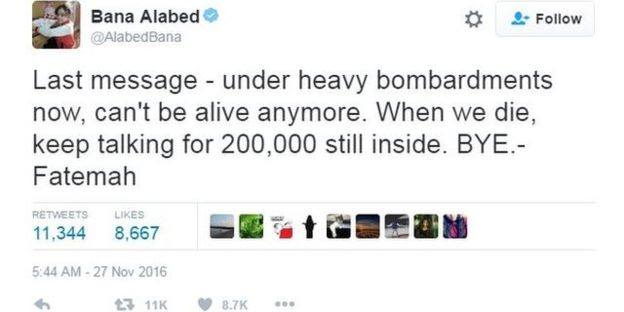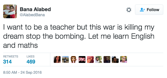 Bana’s tweets truly capture the side of the story you never hear, the side of a child watching people around her die, and cities burn to the ground.
