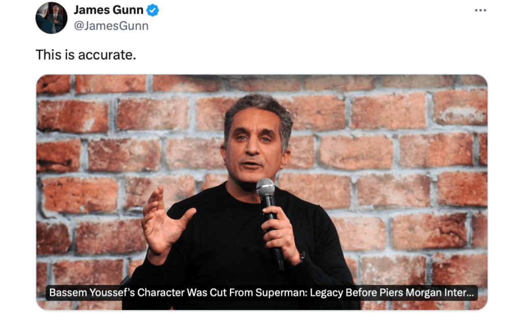 A stir was caused all over social media when Egyptian comedian and TV host Bassem Youssef said that he lost a role in James Gunn’s ‘Superman: Legacy‘ because of his avid support of Palestine.