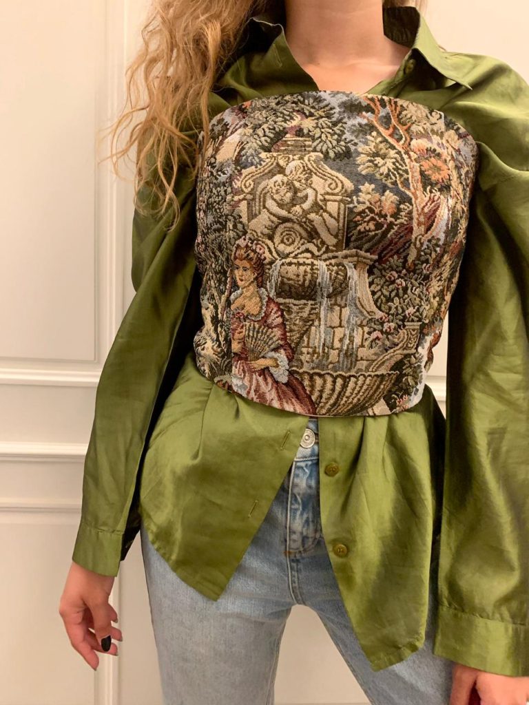 Lama started making corsets out of tapestries, each piece was made from different tapestries, making every piece unique. ByAziza’s mission became making use of something that is seemingly useless and it was through reusing disregarded material that ByAziza succeeded in giving each customer a unique piece that is completely theirs.