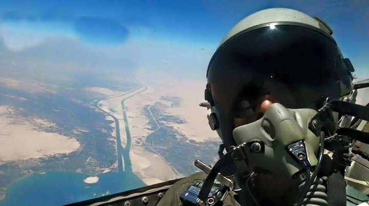 An alleged selfie by an Egyptian Air Force pilot with the New Suez Canal in the background (Facebook)