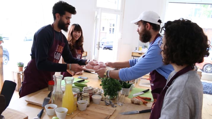Über den Tellerrand, which translates to “Beyond the Plate,” is a nonprofit organization in Berlin that connects refugees with Germans for meals and cooking classes.