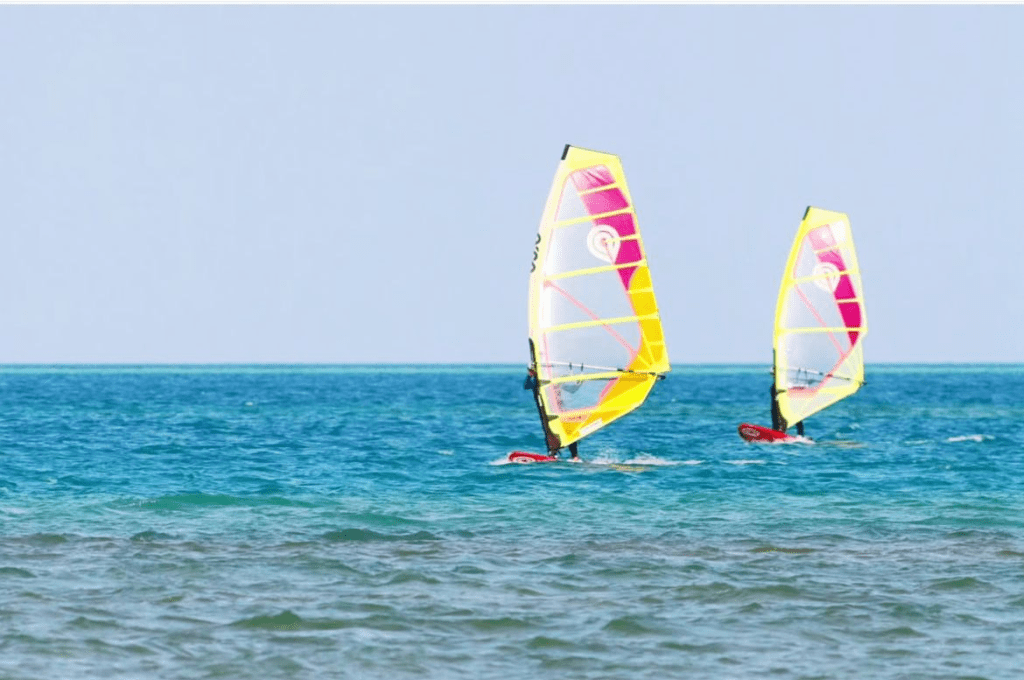 If you’ve ever wanted to ride the wind, windsurfing is for you. It’s all about crystal-clear waters, chill surfer-town energy, and that feeling of flying. It’s a workout and a water adventure all in one.