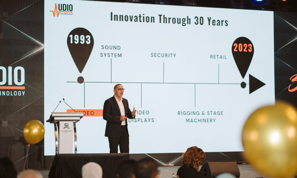Audio Technology, Egypt’s dynamic system integrator celebrated 30 years of innovation at a special event held at the St. Regis Hotel. The special celebration saw over 300 guests in attendance; including partners and vendors ranging from Triple Play, Absen, Pelco, Hanwha Vision, Christie Digital, to Milestone. Audio Technology also has an extensive list of partners, including Shure, Dell, Bose, Harman, Genelec, and Universal Audio.