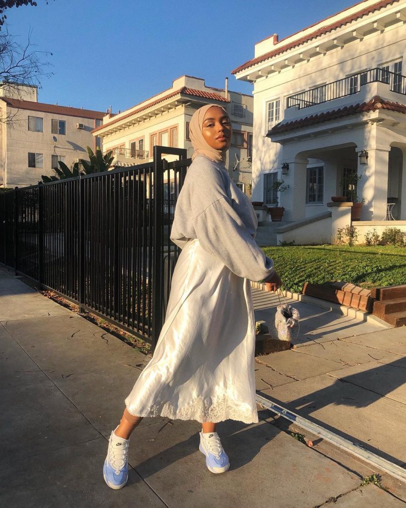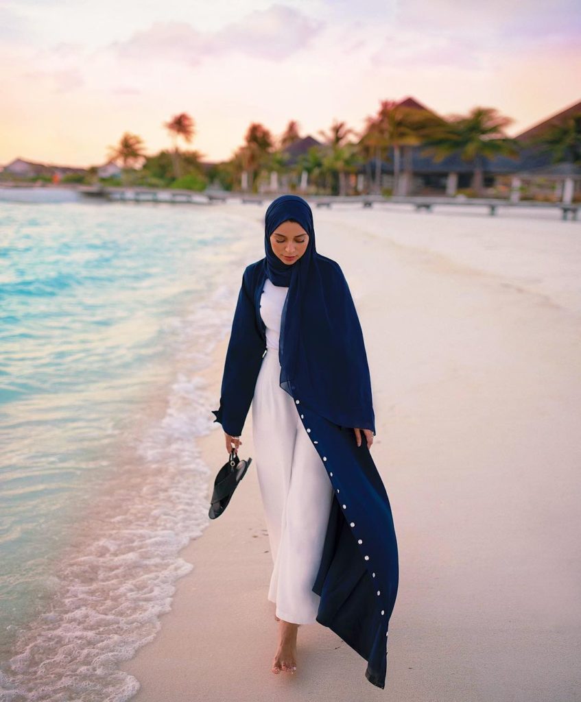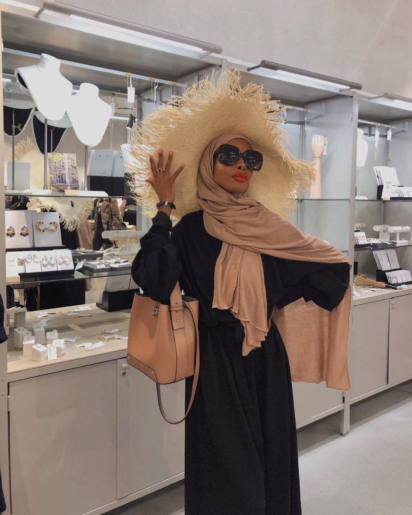 There’s a misconception about veiled women not being able to wear summer hats. However, fashion has no rules. Rock the biggest straw hat and own it. It’ll protect your eyes and head from the blazing sun while adding a statement to your outfit. Pair it with your favorite over-sized butterfly sunglasses and walk with Audrey Hepburn’s elegance.
