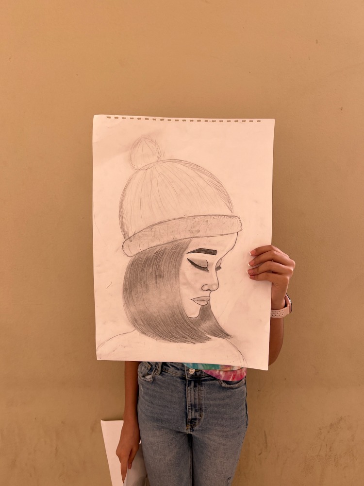Continuing on my journey of discovery I met a multi-talented girl who is not only an artist but a ballerina. Lojaine Mohamed, the 14-year-old who was sketching a girl wearing a beanie as I spoke to her shared her love for art and how taking this art course at the Cairo Opera has affected her life completely, “I came to the Opera House to first learn ballet and while I love dancing ballet, I wanted to pick up art too. Learning art has been a great experience, I love learning from my teacher who is an expert in her field and it has definitely added to my experience of learning ballet for the past four years, now I have become more outgoing and have made more friends in both creative communities.”