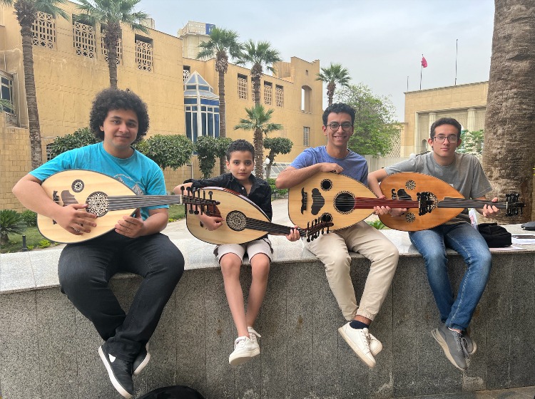 The Music Library is a swirled cylinder-esque-shaped building that provides a cool atmosphere for talents to practice their crafts. Once you enter the building, you’re met with a grand black piano, and this circular two-level building is decorated all over the walls with beautiful art. However, the real art was happening outside when I met Nader Bassem and his friends who were all practicing oud, “I have been learning oud for the past four months. It is been a great experience so far; I have always wanted to learn the instrument after watching YouTube videos but I didn’t know where to start,” Bassem said. The creative went on to also explain how learning oud not only gave him confidence and a newfound passion but friends, “I have met my current friends through oud and we’ve become close through our shared love for the instrument.” Oud while may seem like an outdated, difficult instrument has bridged the gap between generations and brought people closer to the Music Library.