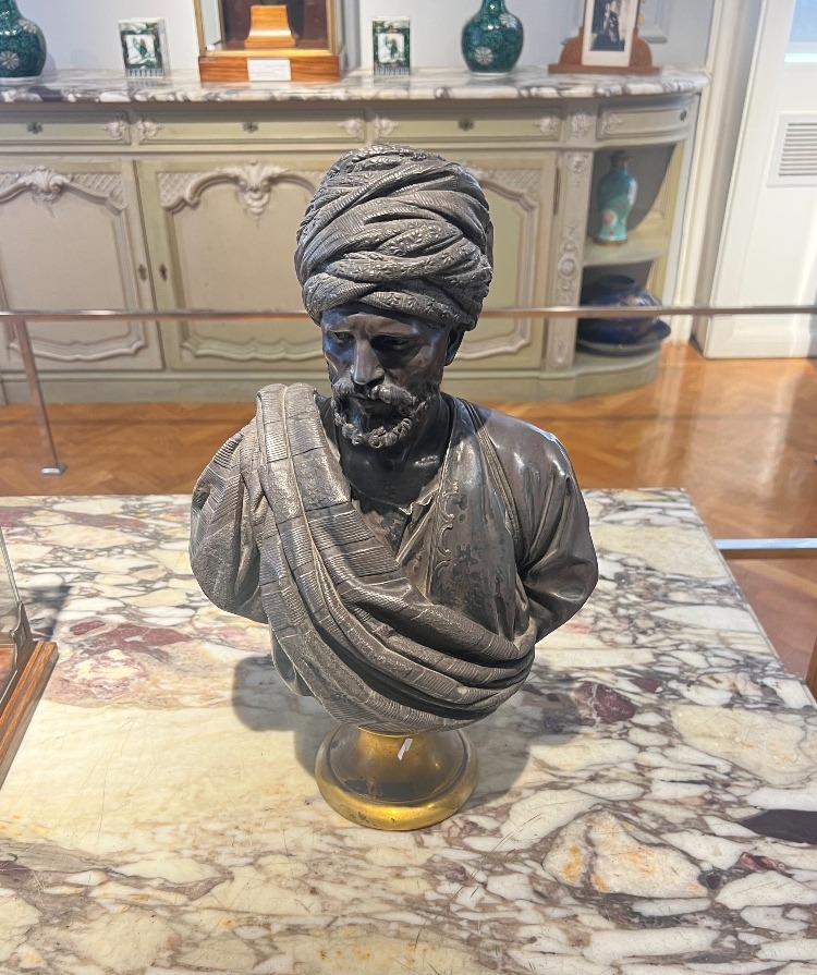 Because there are so many artworks in the museum, I only focused on the ones that grabbed my attention. This one in specific felt so surreal as it portrays “An Arab Sheikh from Cairo.” It’s made of bronze and was crafted by French artist, Charles Cordier. He was one of the greatest French 19th-century sculptors. In 1854, he made his first trip to Algeria and brought a collection of sculptures for inspiration. He then became a noted sculptor, and his work was portrayed in exhibitions abroad such as Paris.