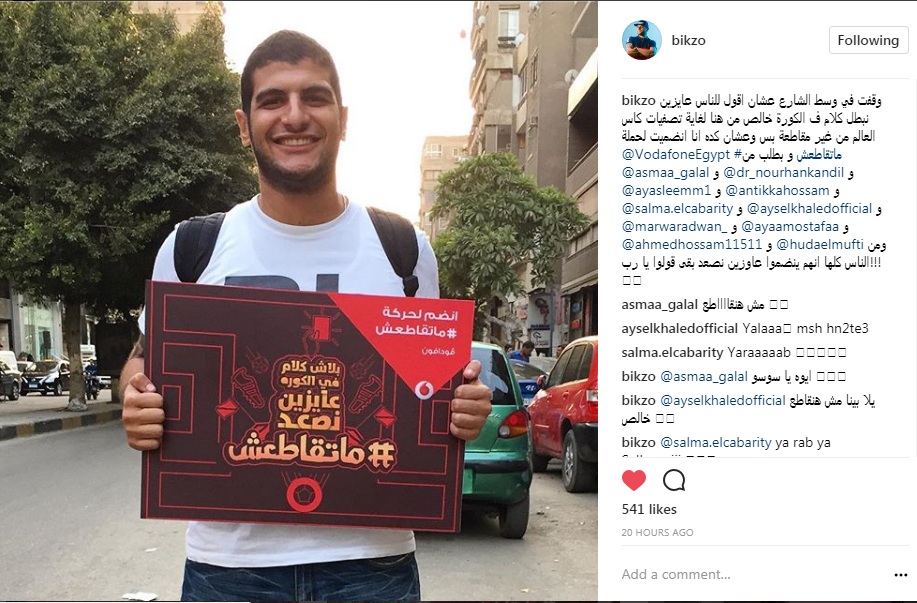 Vodafone is literally asking Egyptians not to talk about football for the following two months, in an effort to increase our chances of qualifying for the World Cup. What’s great about this is that their campaign spread on social media like wildfire, with people — social media influencers included — flooding everyone’s timeline with them.