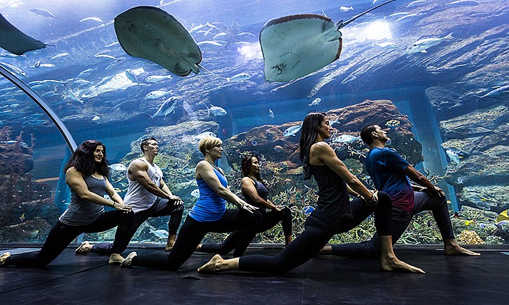 The latest offering at Dubai Mall has turned the place into somewhere magical — not that it wasn’t before. The Tunnel, in the aquarium, will host four sessions – Go with the Flow, Ride the Wave, Taking the Plunge and Calming Waters. The first one scheduled to take place is Taking the Plunge, instructed by experts from Piloga Studio Pilates & Yoga – focusing on vinyasa flow yoga. Basically, you can be Ariel or Daryl Hannah in Splash.