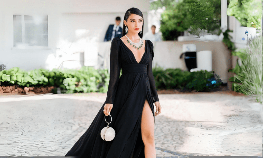 Now we are going to dive into the good stuff. Making her debut at the 2022 Cannes Film Festival, Abu Deif truly turned heads with her first red carpet-appearance at the major event. For her Cannes debut, Abu Deif kept it simple and chic by donning a black Pinko dress paired with gorgeous Chopard jewelry.