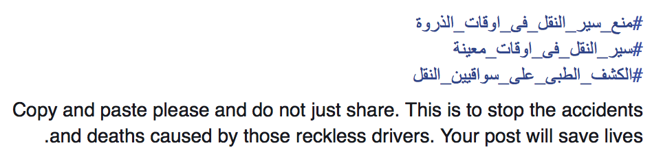 “I lost my child because of a heavy vehicle driver who run me over on the Ring Road along with a truck parked in the middle of the street. 10 cars could have been run over because of these two drivers, but God had forbade it. I’m patient for the loss of my daughter, and shall accept this test, but if you truly care about me we have to take a stand and put an end to it. The traffic law has to be amended and this won’t happen without your help. Tell the story and share the pictures, this topic has to reach wider and wider audiences, so nobody would go through the pain that I’m going through, and no family would lose a member of it to the deadly roads. May God never put you in the situation where I was put, the horror that I have seen in these few minutes of the accidents nor the terror in my daughter’s eyes when she was squeezed in the backseat of the car. God give me patience.”