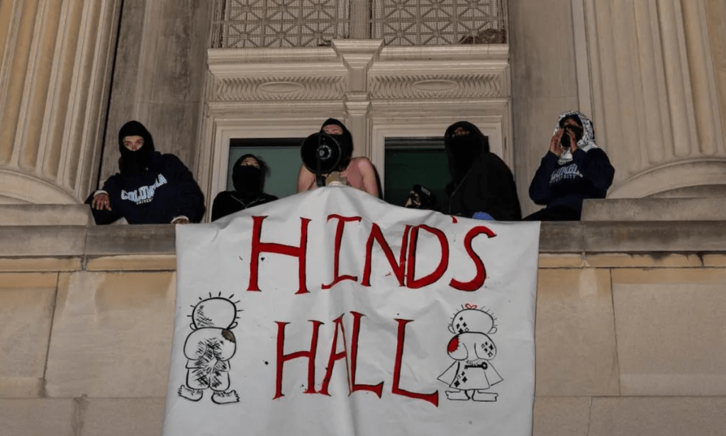 Once they got inside, they were ready to make a major statement. Standing at the balcony of the hall, they slowly unfurled a banner that read “Hind’s Hall”. The building was unofficially renamed Hind’s Hall in honor of Hind Rajab, a six-year-old Palestinian girl who was killed by Israeli tanks.