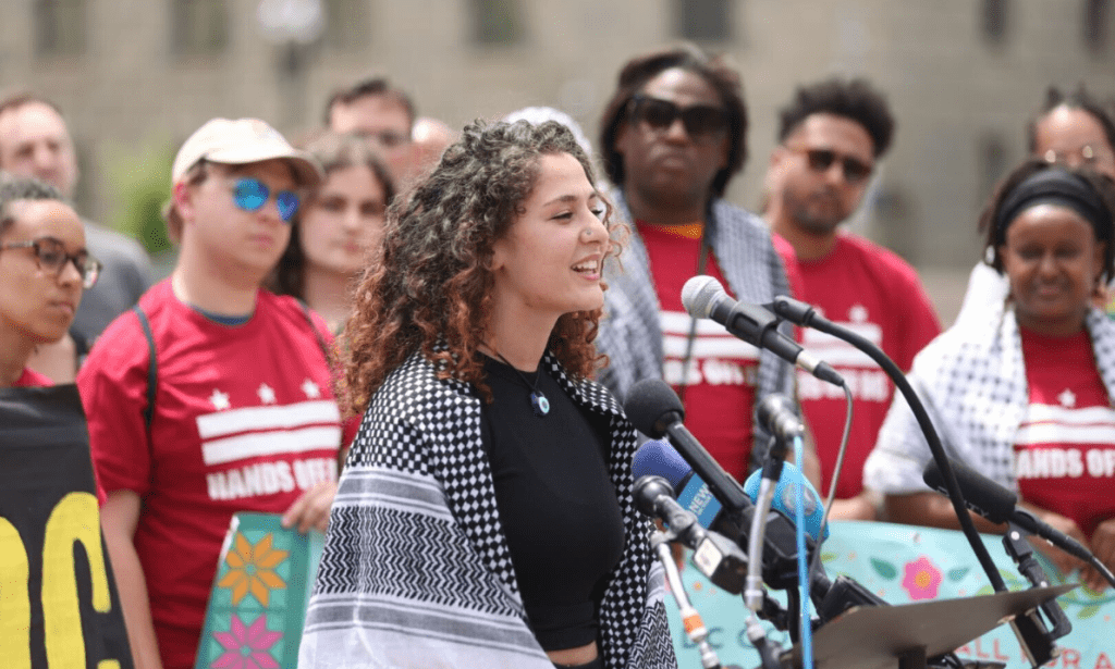 Meet Noor (she declined to give her last name), a George Washington University student who, just an hour and a half after being released from jail, stood in front of a mic and belted out a song, one that she sang with other protestors as she was getting arrested.