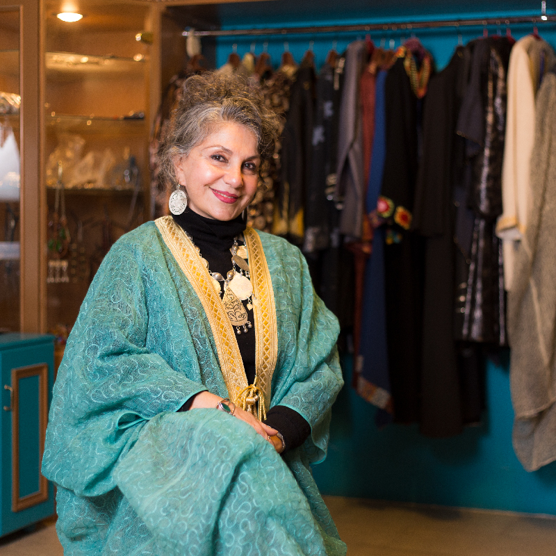With over 25 years in the fashion industry, Hana Sadiq has been a true expression of Middle Eastern elegance. Her work is inspired by different Arabic cultures and many other Arab intellectuals and influencers. Her extensive travelling through the Middle East exposed her to many artistic approaches, which she now incorporates into her bright and colourful designs. You’ll also notice Arabic calligraphy on her clothes. In a very inspiring way, she blends culture and heritage with the latest fashion trends.