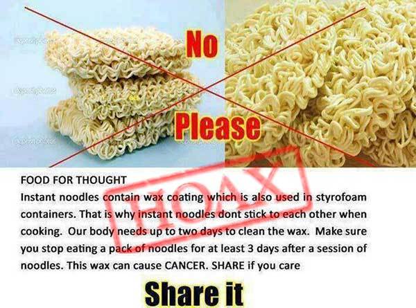 Every once in a while you receive this chain messages of how products such as Indomie, Dasani, Cadbury can cause cancer or other serious diseases with no proof whatsoever.