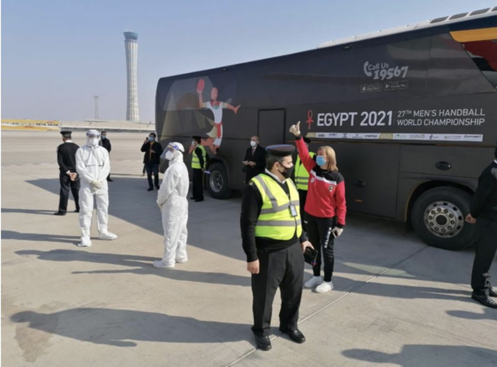 On Sunday, Japan’s handball team arrived in Cairo to participate in the 27th Men’s Handball World Championship in Egypt. The Japanese team wore face masks and were received not only by officials wearing face masks, but also medics who as always measure temperatures after the team members disembark from their plane.