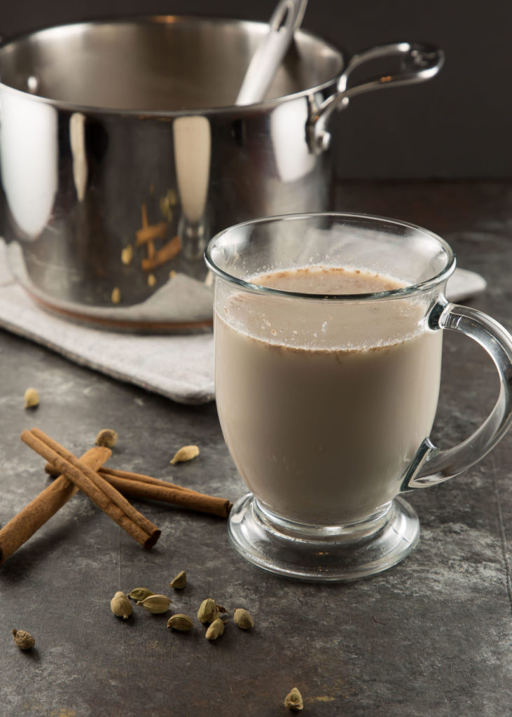 This warm chai-like spiced almond milk features cardamom and it’s vegan and gluten-free. Get the full winter delight recipe made with vanilla extract, turmeric and cinnamon, here.