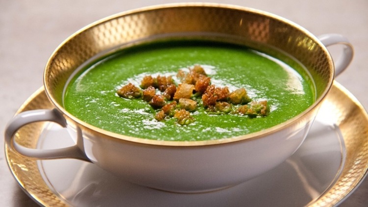 Recipe: Sauté the onion in butter in a large saucepan over medium heat for 4 minutes. Then add the potatoes, chicken broth and water and bring to a boil. Reduce to low heat, cover and simmer for 20 minutes. Follow that by adding the spinach and cooking it for 2 to 4 minutes or until it’s tender. Puree the soup in a blender, return it to the pan then whisk in the heavy cream, salt and pepper. Over low heat, just before it simmers, add in the sour cream and your soup will be ready.