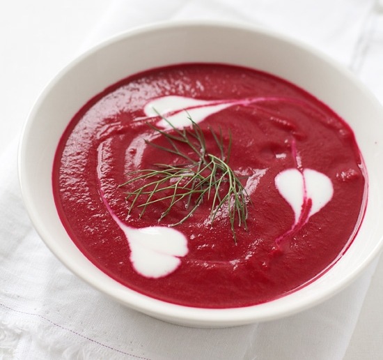 Recipe: In a medium-sized saucepan heat oil over medium heat. Add onion, garlic, and salt then wait until they’re soft. Add beets and 4 cups of water, and cover until the beets are soft and tender. Let it cool and then move the mixture into a blender. Blend until smooth then top it with thyme and it’s ready to eat.