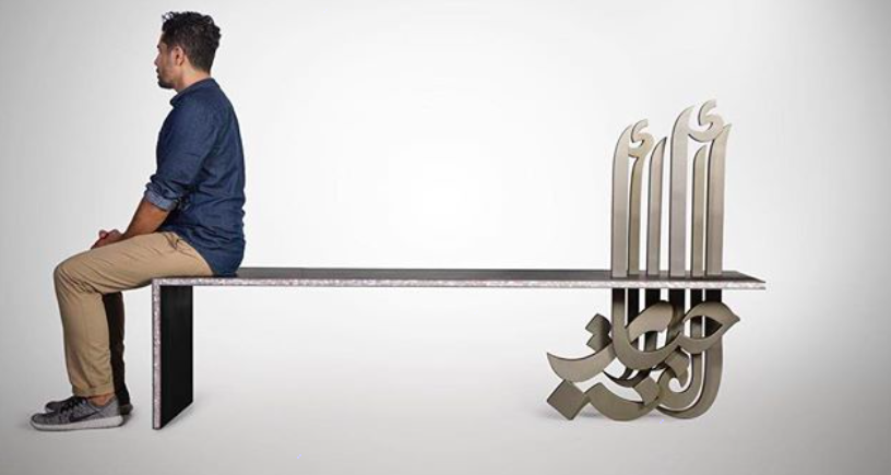 Naja, who is currently studying a Master’s in Islamic Art and Architecture at LAU’s School of Architecture and Design, is known for flaunting his signature bold Arabic calligraphy on solid construction materials such as concrete. His creations range from consoles with Arabic letters for legs, lamps encircled with Islamic art, to Quranic verses on walls made of brass and so much more.