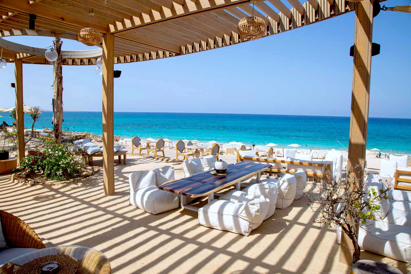 This captivating retreat stands as a vivid burst of color against the desert backdrop, with the deep cobalt sea stretching beyond the horizon, and the lush gardens and palm trees adorning the pristine sands. Nestled within a bay of strategic significance, the resort’s beach is truly a paradise on Earth.