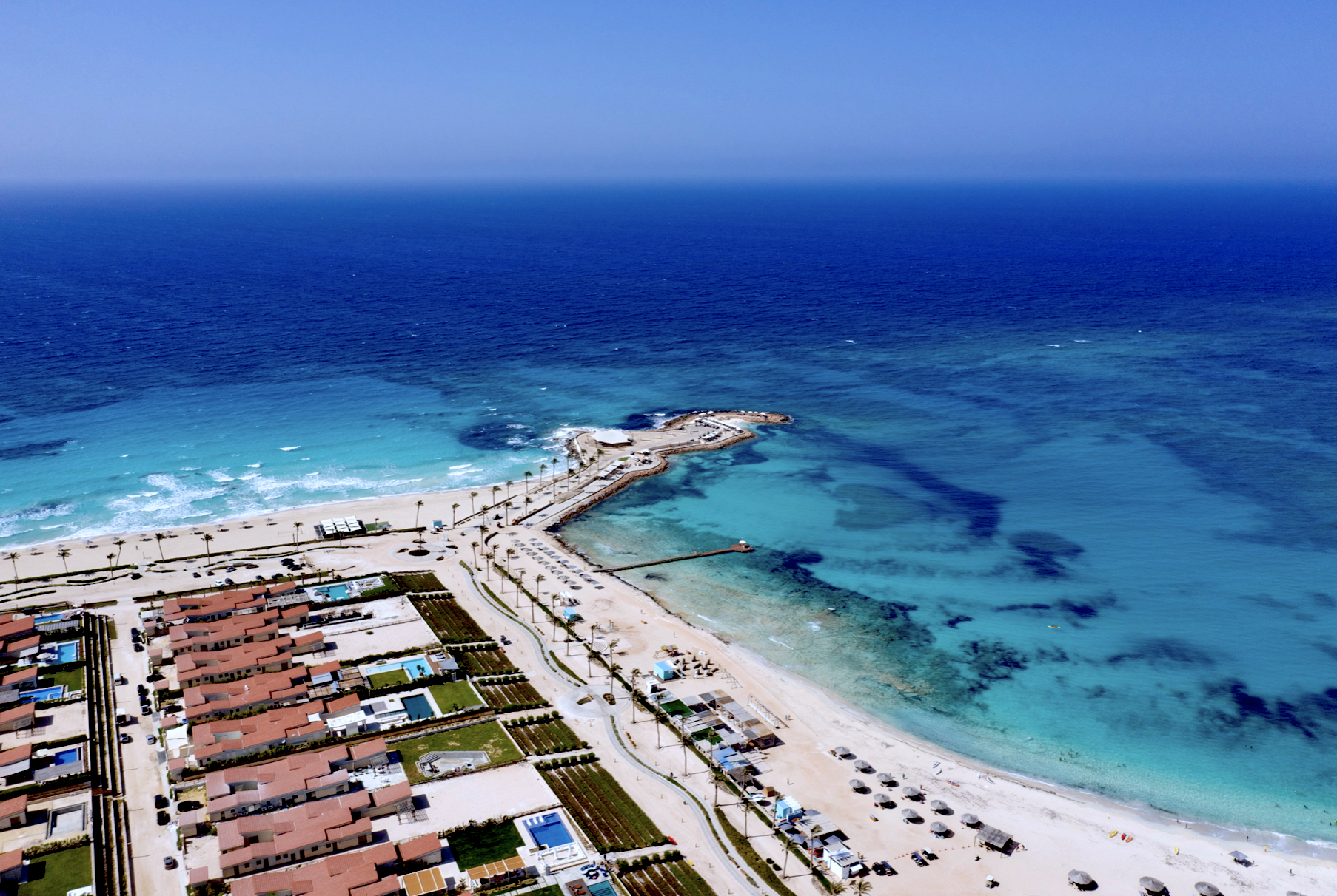 Marakez Development’s Ramla North Coast project redefines the concept of coastal living in Egypt. Stretching over 1.4 kilometers, its white sandy beaches and crystal-clear waters provide an idyllic paradise for beach enthusiasts.