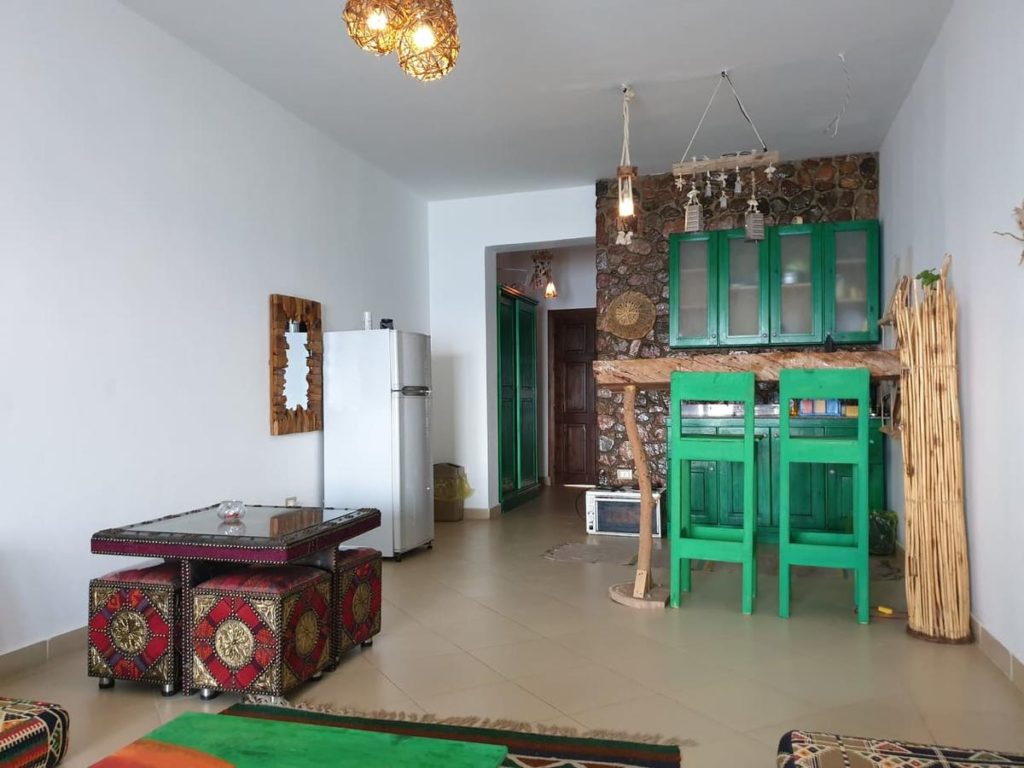 A very nice budget option to fully enjoy your holiday right by the sea. Located in one of Dahab’s nicest areas, it has a second-row sea view with a small garden. It’s a one-bedroom apartment with an open plan kitchen, a comfortable living room, and a sofa bed for an extra guest. All of this with an extremely reasonable price of 29$ per night (455 EGP).