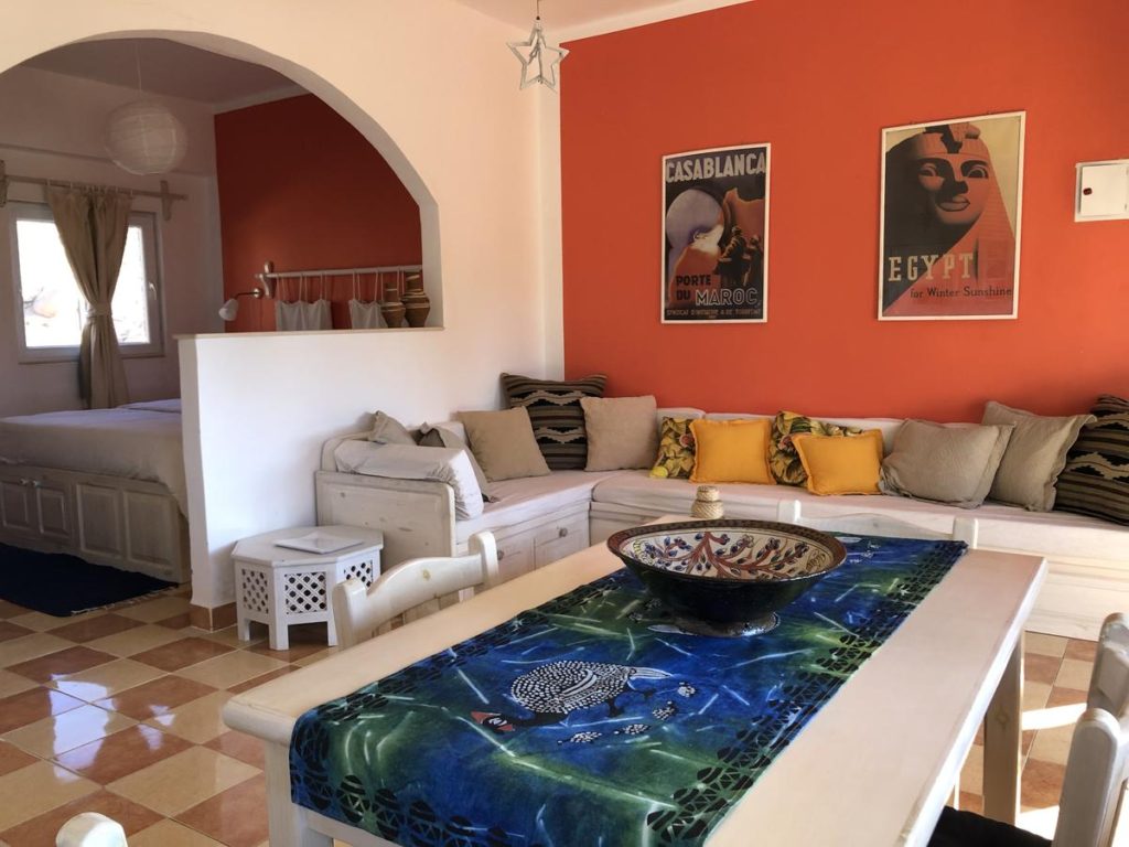 A 2 bedroom apartment, 2 minutes away from the sea. It accommodates 4 guests with 2 couches if you’re more than 4. This cozy apartment is decorated Bedouin style and costs 40$ (628 EGP) per night.