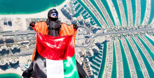 “Only two years skydiving, more than 1000 jumps, balloon jumps, wingsuit flights, freefly, tracking, hybdrids and the First Emirati Woman getting an AFF Instructor rating. Congratulations and thanks for being an example of passion and determination,” famed photographer writes on his Instagram page.