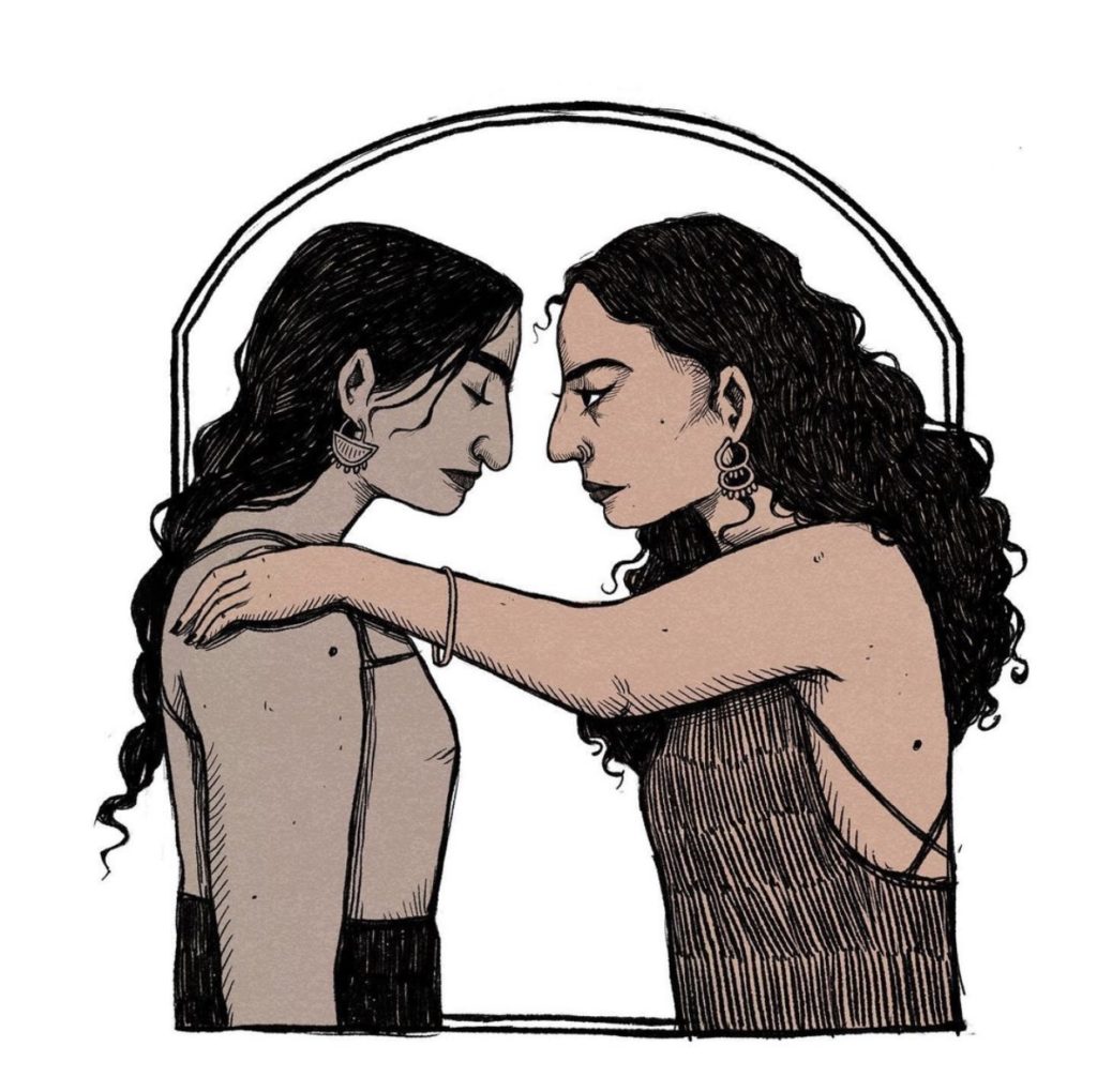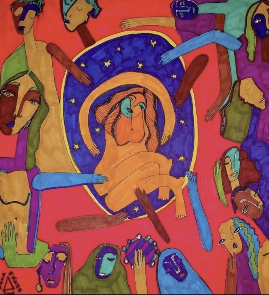 Mona El Kateb is an Egyptian artist from Cairo. Her work explores themes of sisterhood, solidarity and identity, and Kateb actively joins social movements that she feels are important, from women’s issues to contributing to efforts to rebuild Beirut.