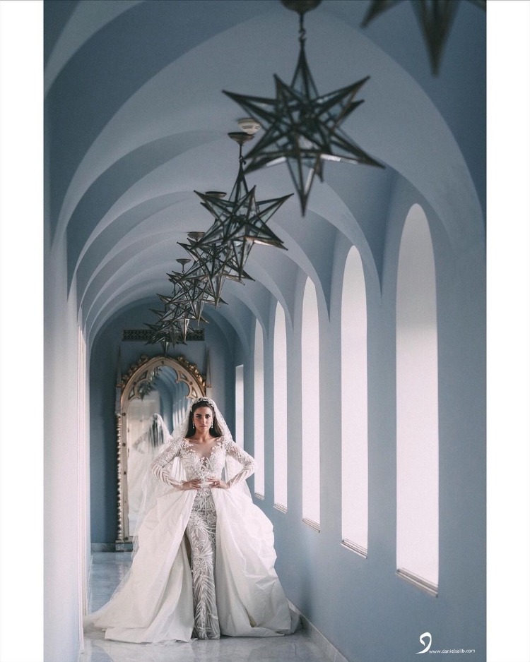 Dorra appeared in one dress during the Katb El-Ketab, and two different dresses, both absolutely gorgeous for the wedding party. Her first dress was a stunning yet simple gown, and her second look was in a beautiful ball gown, both were Lebanese designer Zuhair Murad’s magic. She later removed the dress’s extension to make it easier for her to flow gracefully and dance her heart out.