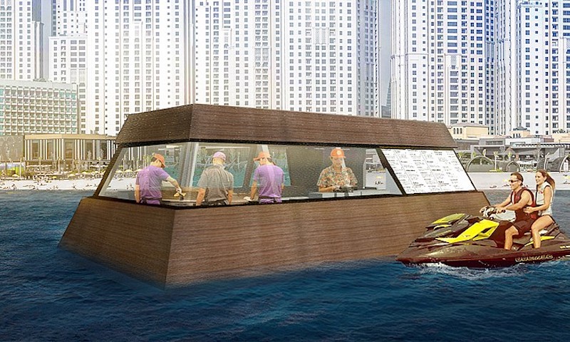 The jet ski will take the order and deliver the food “People can also order directly at the Aqua Pod by stopping their boat, or jet ski, alongside the pod and placing their order. This method is designed for smaller marine craft rather than bigger ones,” Yousuf added.