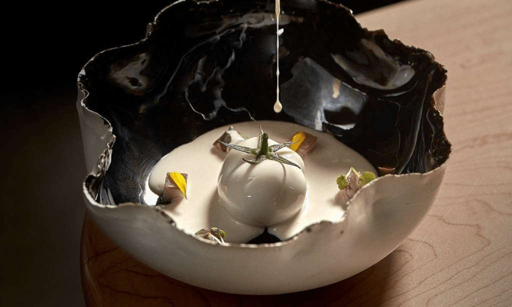 Some of his signatures include the Nitro Tomato, prepared with smoked eel mousse and accompanied by ajoblanco malagueño, cubes of smoked eel, and roasted pepper caramel gel.