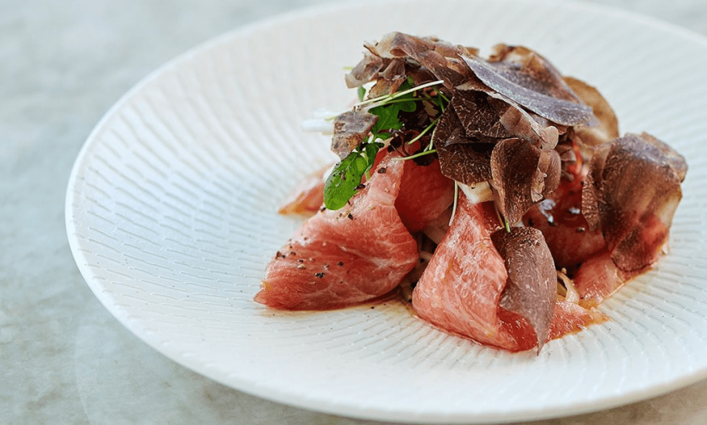 Among the delicious roster of menu items created using the finest French techniques is their Botan Shrimp—a medley of Hokkaido sea urchin and Sagetsu Oscietra caviar—as well as their Japanese wild-caught bluefin tuna carpaccio.