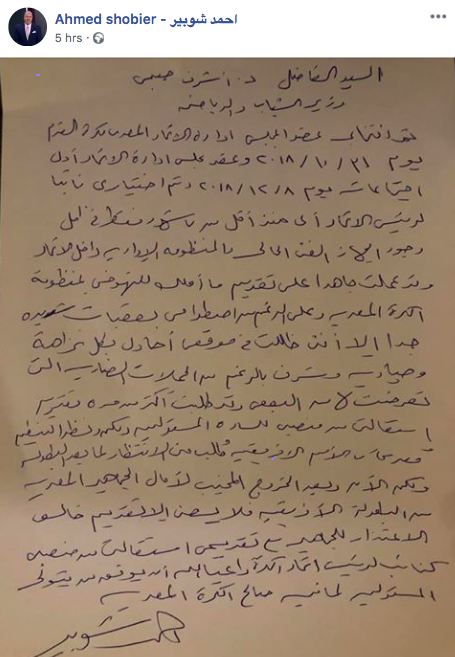 Shortly after Abou Reda’s announcement, Ahmed Shobair, the EFA’s vice president, resigned as well.
